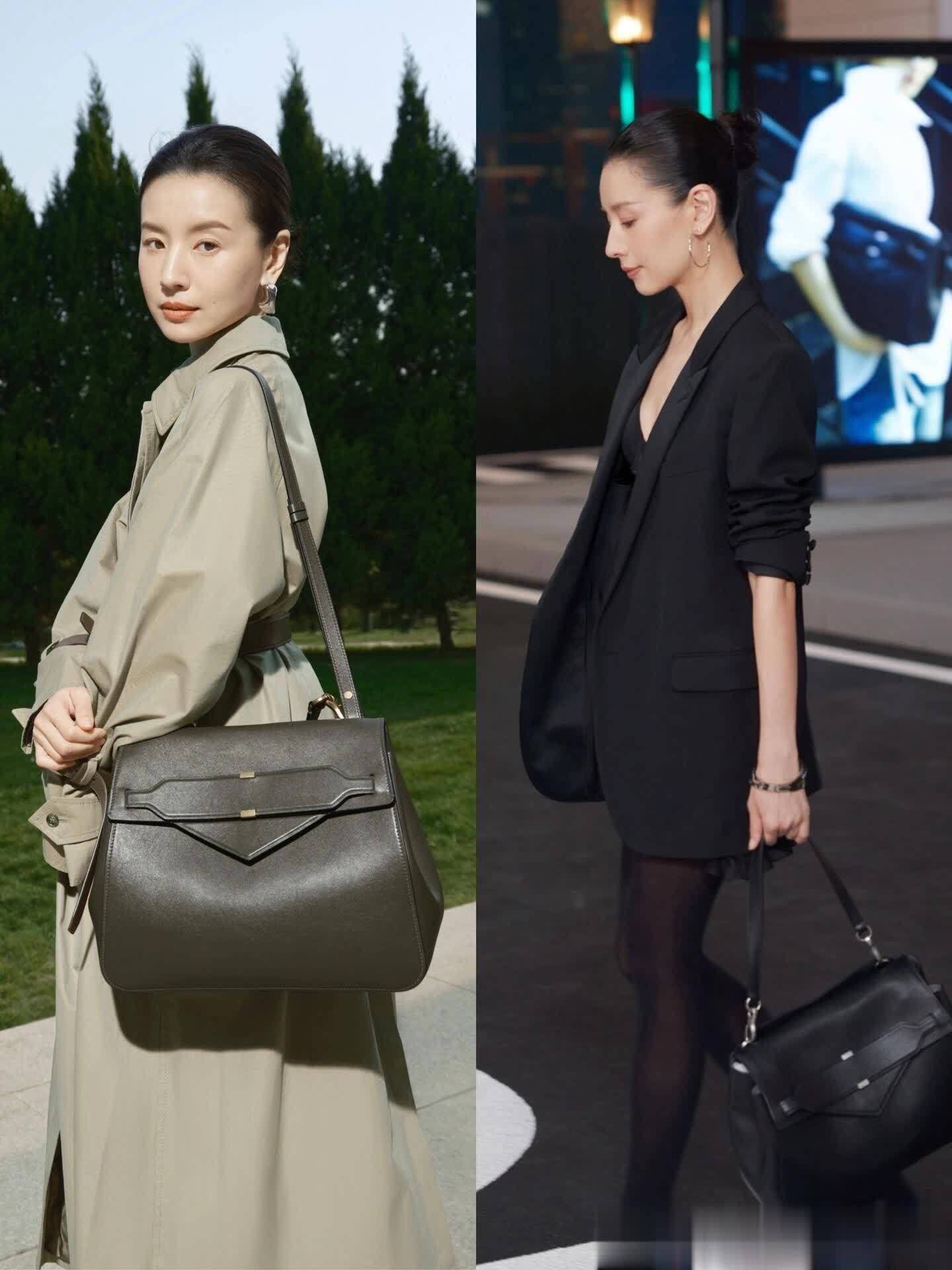 董洁秋季通勤穿搭,风衣与包包是氛围感实用双料王